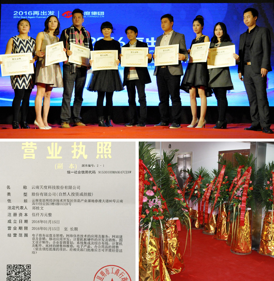2016年1月28日,云南天度集團(tuán)董事長鄭桂文向所有獲得股份獎勵的員工頒發(fā)了《股權(quán)證書》,并將所有股東、董事、監(jiān)事提交到云南省工商行政管理局進(jìn)行了正式登記。