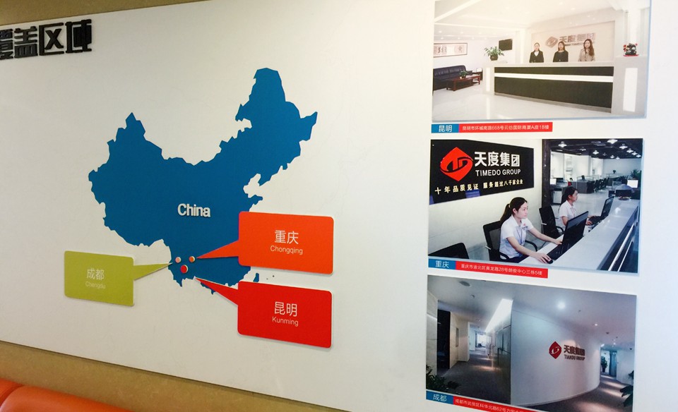 集團概況的文化墻對面就是咱們天度更詳細(xì)的“集團架構(gòu)”,分別羅列出了重慶、昆明、成都三個總部的子公司,讓客戶對天度集團名下的子公司有更深入的認(rèn)識,也從正面證明了天度12年積累下來的傲人的成果。