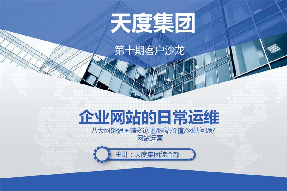 企業(yè)網(wǎng)站建設是企業(yè)文化的組成部分,對企業(yè)形象的建立和企業(yè)知名度的提高起著至關重要的作用,是企業(yè)實現(xiàn)”互聯(lián)網(wǎng)+“產(chǎn)業(yè)轉型的重要手段。建一個網(wǎng)站,對于大多數(shù)人并不陌生。尤其是已經(jīng)擁有自己網(wǎng)站的企業(yè)和機構。但是提到網(wǎng)站運營可能特別多人不理解,對網(wǎng)站運營的重要性也不明確,通常被忽視。故此天度集團專門針對“企業(yè)站的日常運維”展開了第十期客戶沙龍。