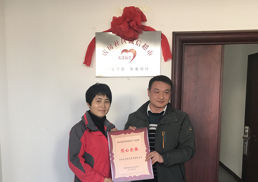 西山區(qū)科技局局長王敬紅、烏龍鎮(zhèn)鎮(zhèn)長楊勇、人大主席肖嬋姬、西山區(qū)扶貧辦領(lǐng)導(dǎo)等出席了捐贈(zèng)儀式。店房村黨支部馬書記、店房村委會(huì)馬主任與楊總、宮副總一同對愛心超市進(jìn)行揭牌。