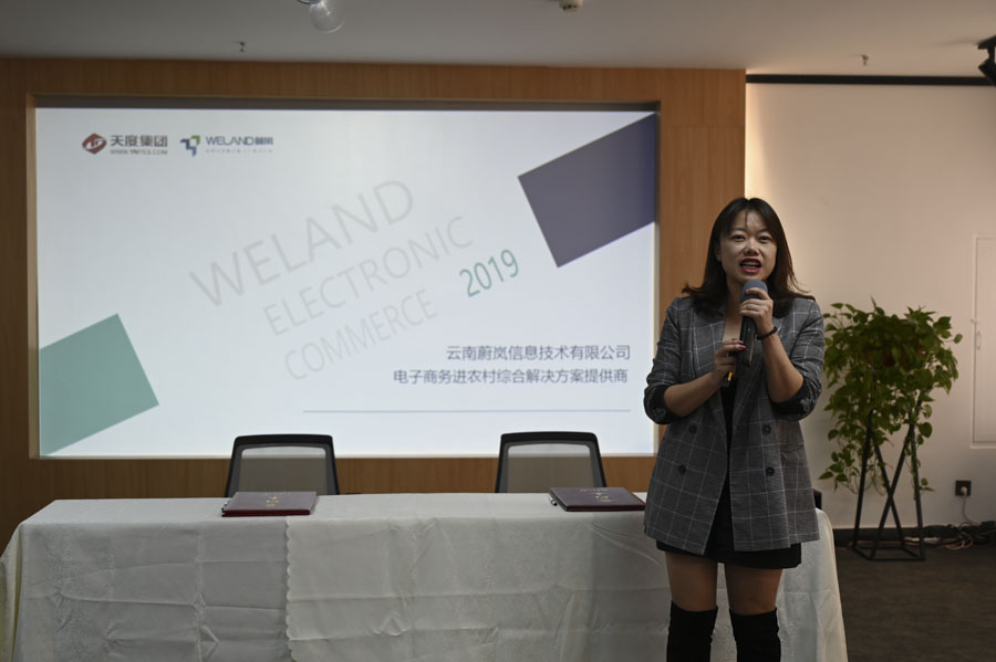 云南蔚嵐信息技術(shù)有限公司副總經(jīng)理周晶晶介紹“國家電子商務(wù)進(jìn)農(nóng)村綜合示范項(xiàng)目”。