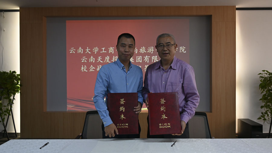 云南大學(xué)商旅學(xué)院與天度集團(tuán)簽訂校企合作協(xié)議和科研及教學(xué)基地授牌