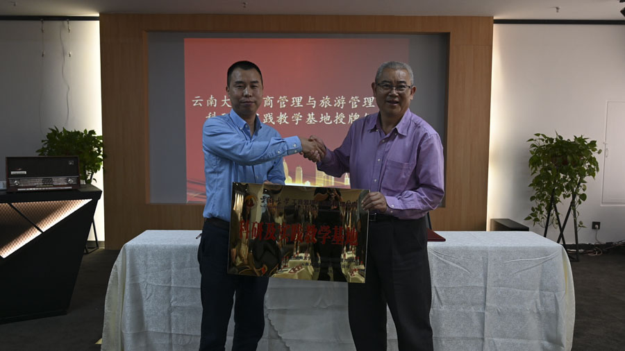 為深入推進(jìn)校企合作協(xié)議,云南大學(xué)商旅學(xué)院副院長姚建文為云南天度集團(tuán)授予了“云南大學(xué)科研及實(shí)踐教學(xué)基地”牌匾,雙方將以此為契機(jī),共同譜寫校企合作的新篇章。