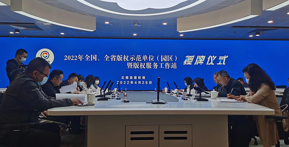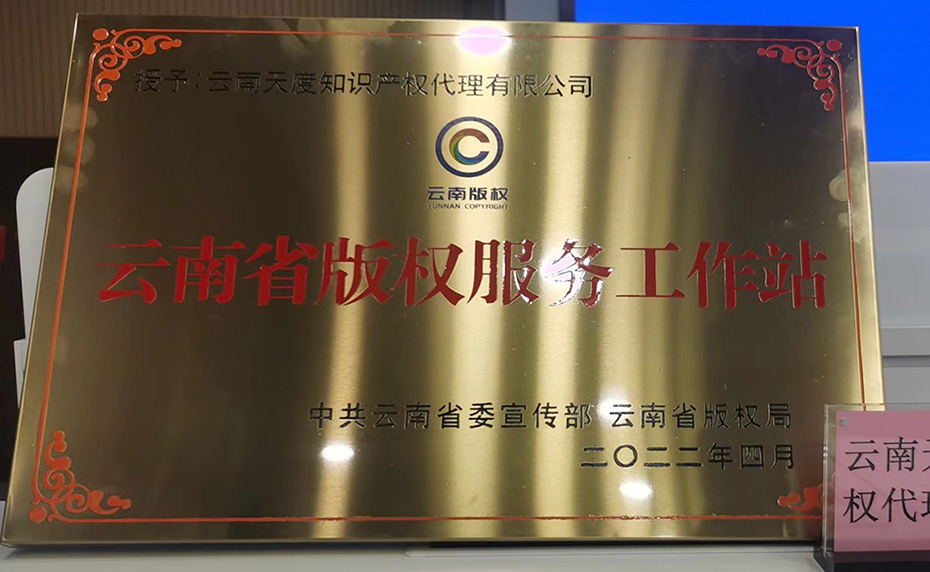 2022年全國(guó)、全省版權(quán)示范單位(園區(qū))暨版權(quán)服務(wù)工作站授牌儀式今日舉行,云南天度知識(shí)產(chǎn)權(quán)代理有限公司等10家企業(yè)獲的“云南省版權(quán)服務(wù)工作站”授牌。