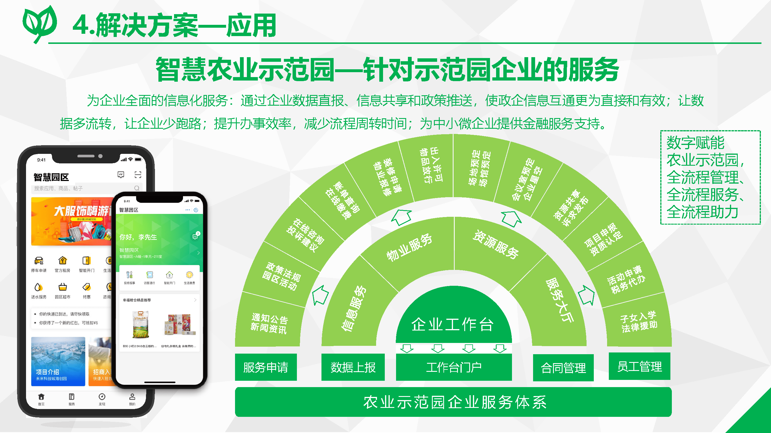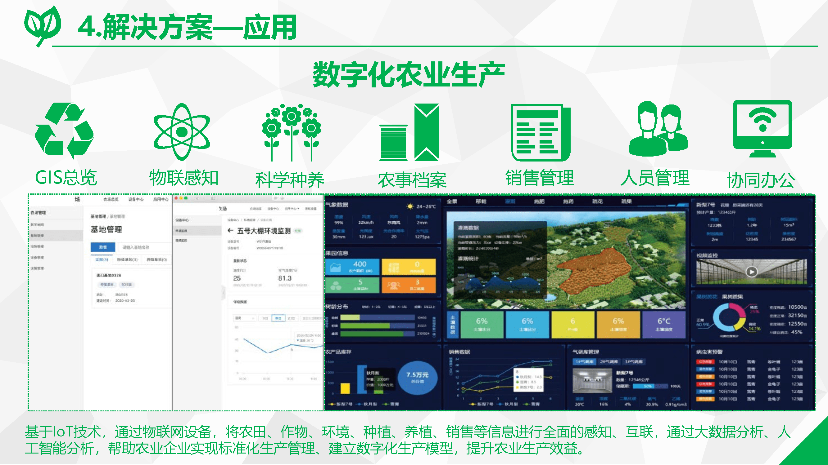 ? 加快搭建智慧農(nóng)業(yè)服務平臺。智慧農(nóng)業(yè)服務平臺的搭建,有助于為特色產(chǎn)業(yè)謀思路,為農(nóng)民致富找門路,為鄉(xiāng)村振興找出路,加快構建現(xiàn)代化鄉(xiāng)村產(chǎn)業(yè)體系。農(nóng)業(yè)數(shù)據(jù)資料建設是智慧農(nóng)業(yè)服務平臺構建的關鍵,應結合大數(shù)據(jù)技術,做好農(nóng)產(chǎn)品生產(chǎn)、加工、存儲、交易等底層數(shù)據(jù)的收集、分析工作。農(nóng)業(yè)生產(chǎn)數(shù)字化能夠促進農(nóng)業(yè)生產(chǎn)、流通、運營等各環(huán)節(jié)與信息技術有效融合,推動傳統(tǒng)農(nóng)業(yè)改造、農(nóng)業(yè)生產(chǎn)方式轉型,有利于鄉(xiāng)村數(shù)字產(chǎn)業(yè)體系的構建。