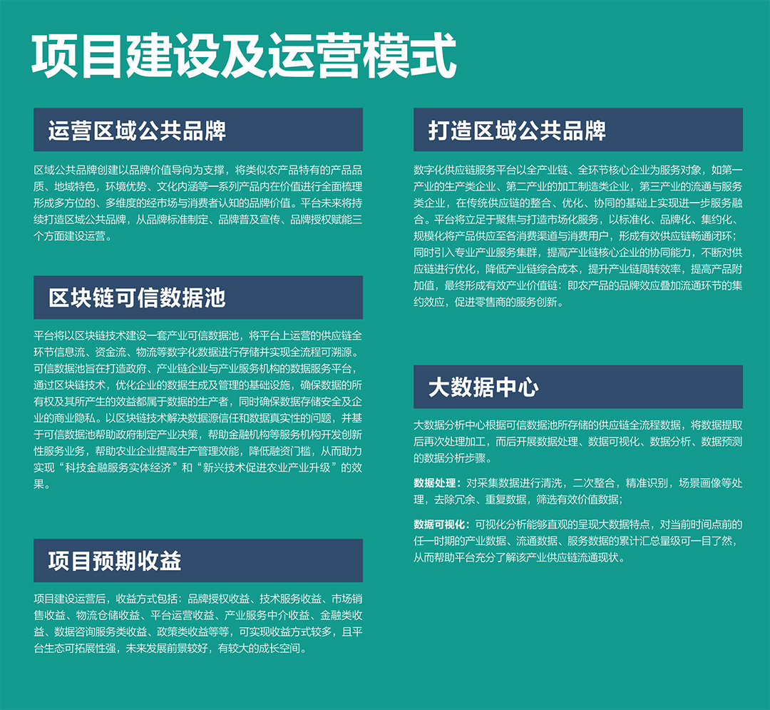 平臺(tái)將以區(qū)塊鏈技術(shù)建設(shè)一套產(chǎn)業(yè)可信數(shù)據(jù)池,將平臺(tái)上運(yùn)營的供應(yīng)鏈全環(huán)節(jié)信息流、資金流、物流等數(shù)字化數(shù)據(jù)進(jìn)行存儲(chǔ)并實(shí)現(xiàn)全流程可溯源??尚艛?shù)據(jù)池旨在打造政府、產(chǎn)業(yè)鏈企業(yè)與產(chǎn)業(yè)服務(wù)機(jī)構(gòu)的數(shù)據(jù)服務(wù)平臺(tái),通過區(qū)塊鏈技術(shù),優(yōu)化企業(yè)的數(shù)據(jù)生成及管理的基礎(chǔ)設(shè)施,確保數(shù)據(jù)的所有權(quán)及其所產(chǎn)生的效益都屬于數(shù)據(jù)的生產(chǎn)者,同時(shí)確保數(shù)據(jù)存儲(chǔ)安全及企業(yè)的商業(yè)隱私。以區(qū)塊鏈技術(shù)解決數(shù)據(jù)源信任和數(shù)據(jù)真實(shí)性的問題,并基于可信數(shù)據(jù)池幫助政府制定產(chǎn)業(yè)決策,幫助金融機(jī)構(gòu)等服務(wù)機(jī)構(gòu)開發(fā)創(chuàng)新性服務(wù)業(yè)務(wù),幫助農(nóng)業(yè)企業(yè)提高生產(chǎn)管理效能,降低融資門檻,從而助力實(shí)現(xiàn)“科技金融服務(wù)實(shí)體經(jīng)濟(jì)”和“新興技術(shù)促進(jìn)農(nóng)業(yè)產(chǎn)業(yè)升級(jí)”的效果。