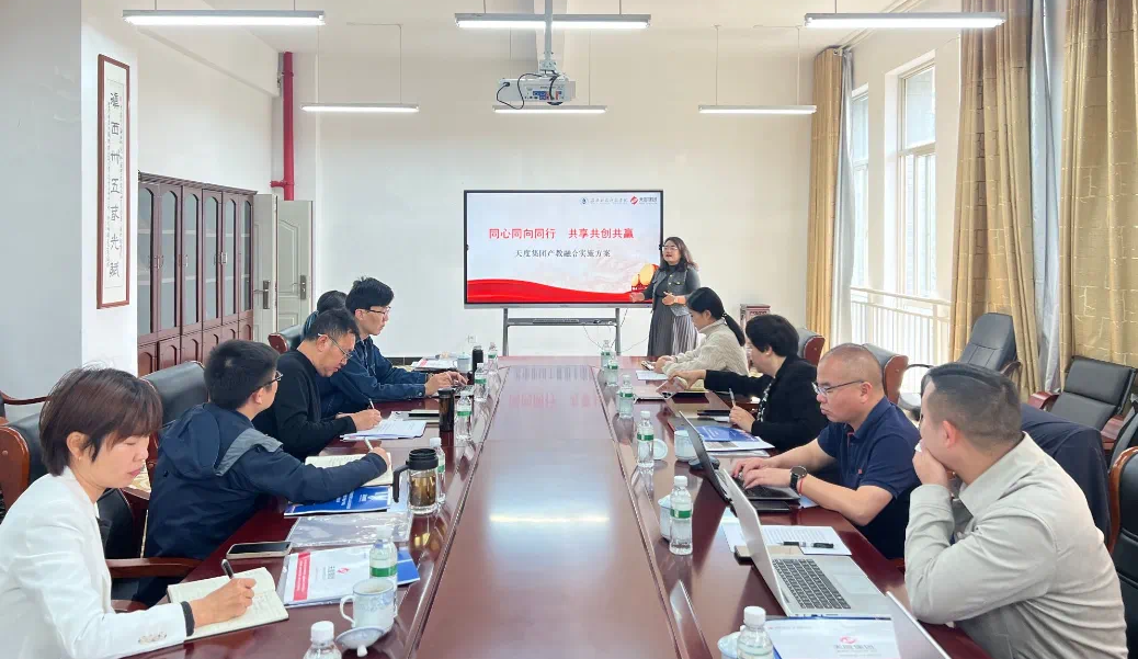座談會(huì)上,與會(huì)人員共同觀看了云南天度投資集團(tuán)宣傳片,胡婷婷就“產(chǎn)業(yè)學(xué)院建設(shè)定位”“產(chǎn)業(yè)學(xué)院建設(shè)內(nèi)容”“預(yù)期成效”四個(gè)方面對(duì)產(chǎn)教融合實(shí)施方案進(jìn)行了詳細(xì)介紹,以“共建、共管、共享”的合作理念,聚焦云南及臨滄產(chǎn)業(yè)需求,在專(zhuān)業(yè)建設(shè)、課程開(kāi)發(fā)、師資共建、就業(yè)服務(wù)等方面深化合作。隨后,與會(huì)人員就產(chǎn)業(yè)學(xué)院建設(shè)等相關(guān)情況進(jìn)行了深入交流研討,達(dá)成了一定共識(shí)。